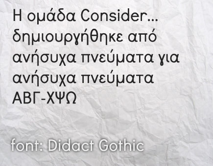 Η ομάδα του Consider… σας προσφέρει 5 Δωρεάν Ελληνικές Γραμματοσειρές κάθε Παρασκευή για να τις χρησιμοποιήσετε στις μελλοντικές σας “δημιουργίες”!