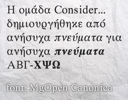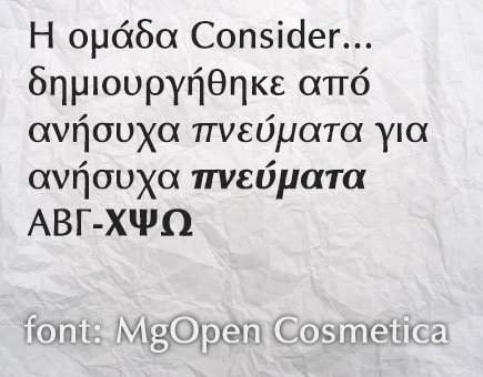 Η ομάδα του Consider… σας προσφέρει 5 Δωρεάν Ελληνικές Γραμματοσειρές κάθε Παρασκευή για να τις χρησιμοποιήσετε στις μελλοντικές σας “δημιουργίες”!