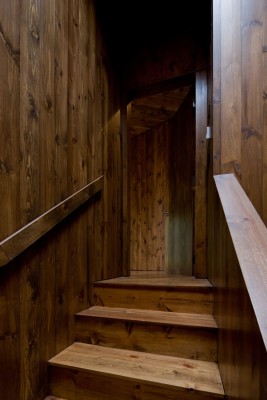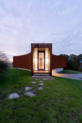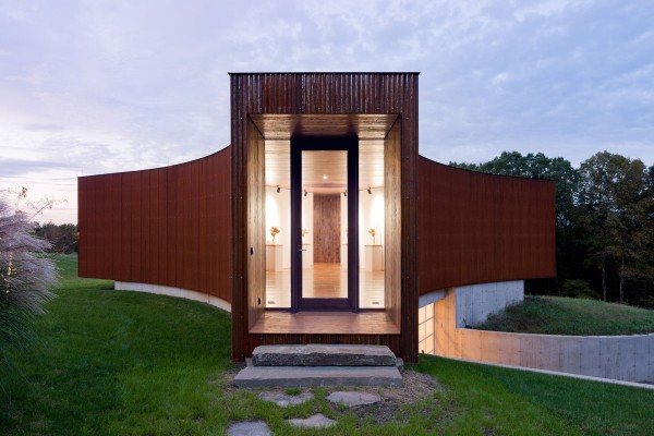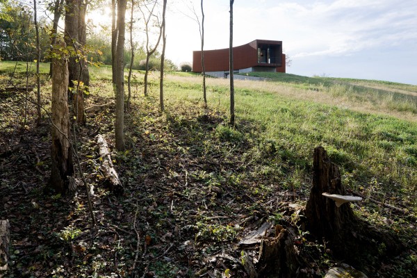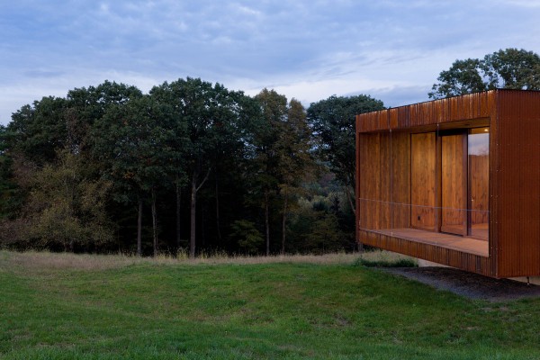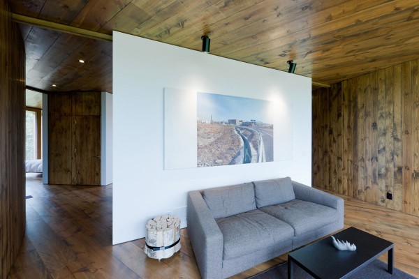 Ο ξενώνας έχει επενδυθεί εσωτερικά με ξύλο και εξωτερικά αποτελείται από ειδικό χάλυβα το οποίος οξειδώνεται φυσικά με την πάροδο του χρόνου, έχοντας την όψη της σκουριάς, ώστε να συγχωνεύεται απόλυτα με το τοπίο, ιδιαιτέρα το φθινόπωρο, όταν το φύλλωμα των δέντρων μετατρέπεται σε μια χρυσοκόκκινη επανάσταση. Η διακόσμηση των εσωτερικών χώρων έχει επίσης επηρεαστεί από το τοπίο ώστε να κρατάει μια φυσική ισορροπία…